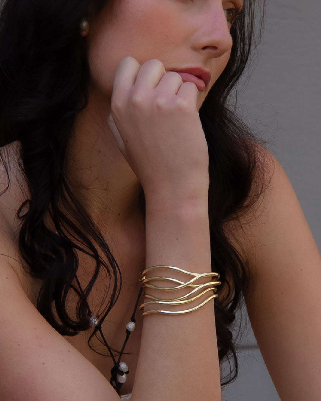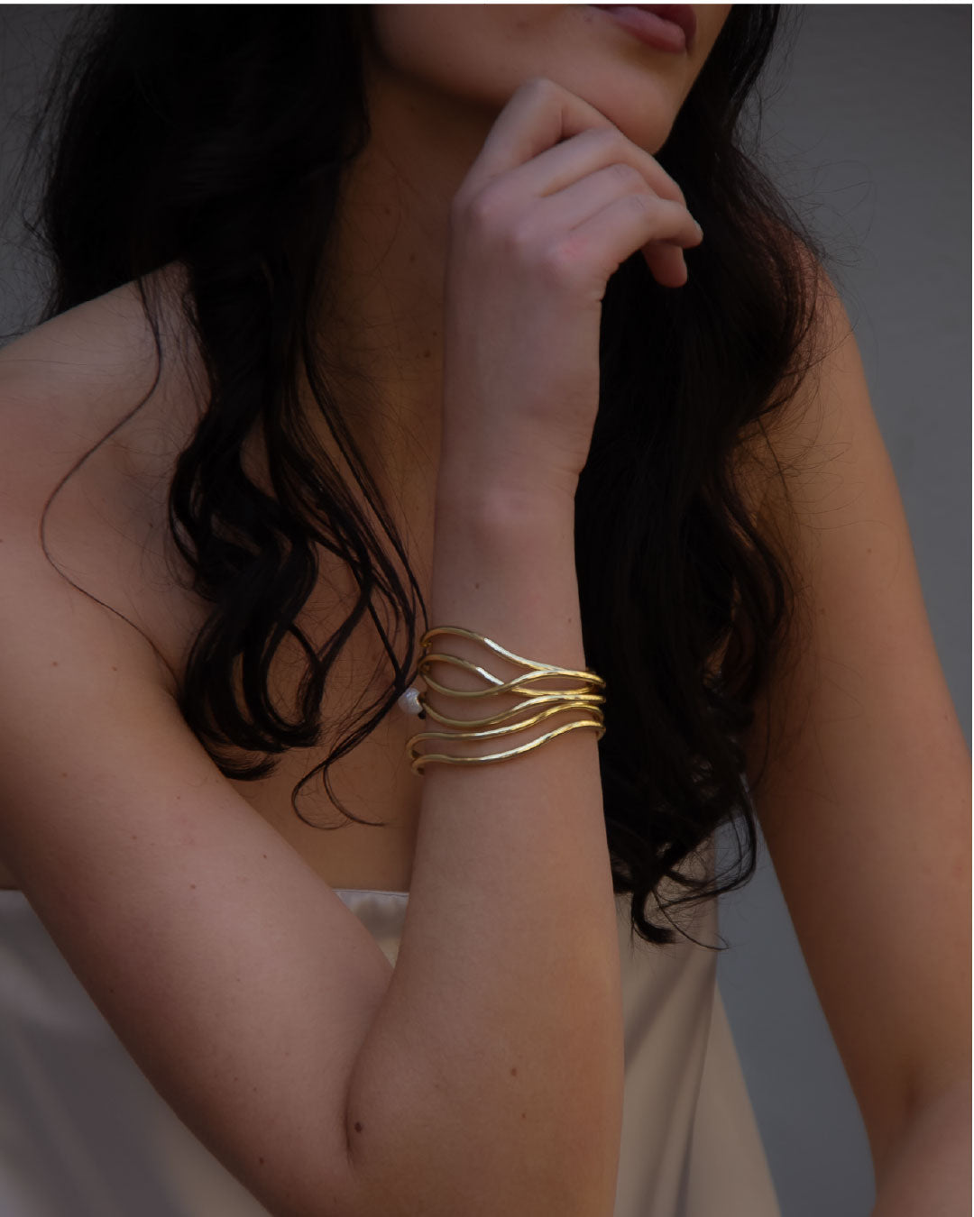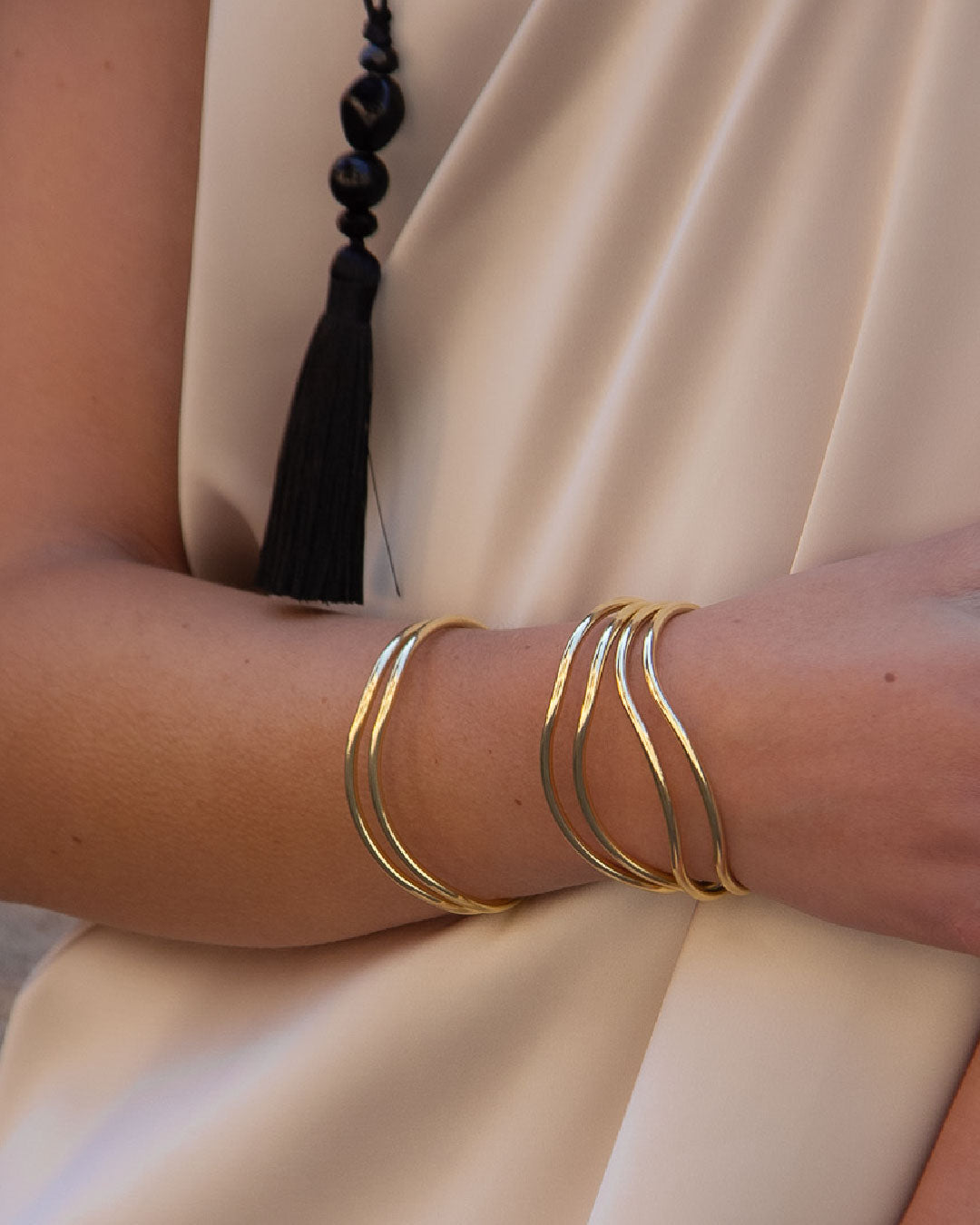 Diseño doble y simétrico que refleja equilibrio y sofisticación. Esta esclava chapada en oro 18k de 11 micras presenta dos líneas lisas con una leve curvatura central que se adaptan con suavidad a la muñeca. Su acabado pulido realza la luminosidad del dorado, logrando una pieza clásica y atemporal, ideal para acompañar looks elegantes o elevar un conjunto cotidiano.