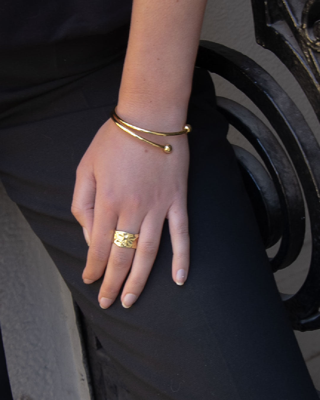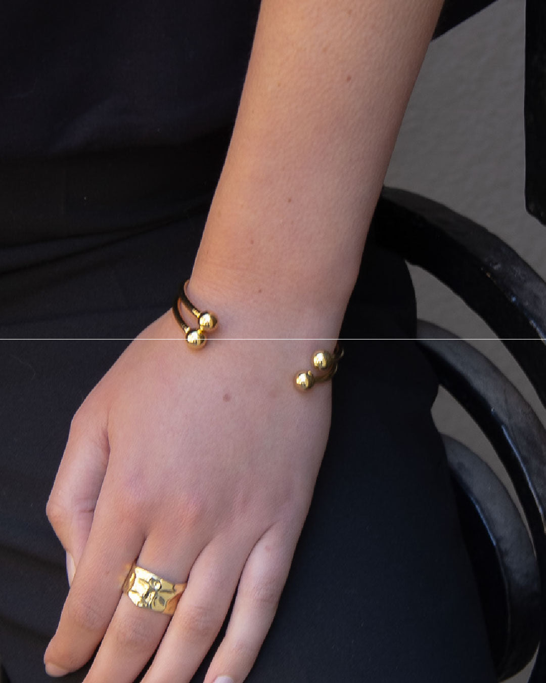 Una pieza clásica y atemporal. Esta esclava chapada en oro 18k de 11 micras de ancho destaca por su silueta limpia y su brillo intenso. Sus extremos terminan en delicadas esferas pulidas que aportan equilibrio y un toque de elegancia discreta. Ideal para usar sola o acompañada de otras pulseras doradas, es un básico refinado que eleva cualquier look.
